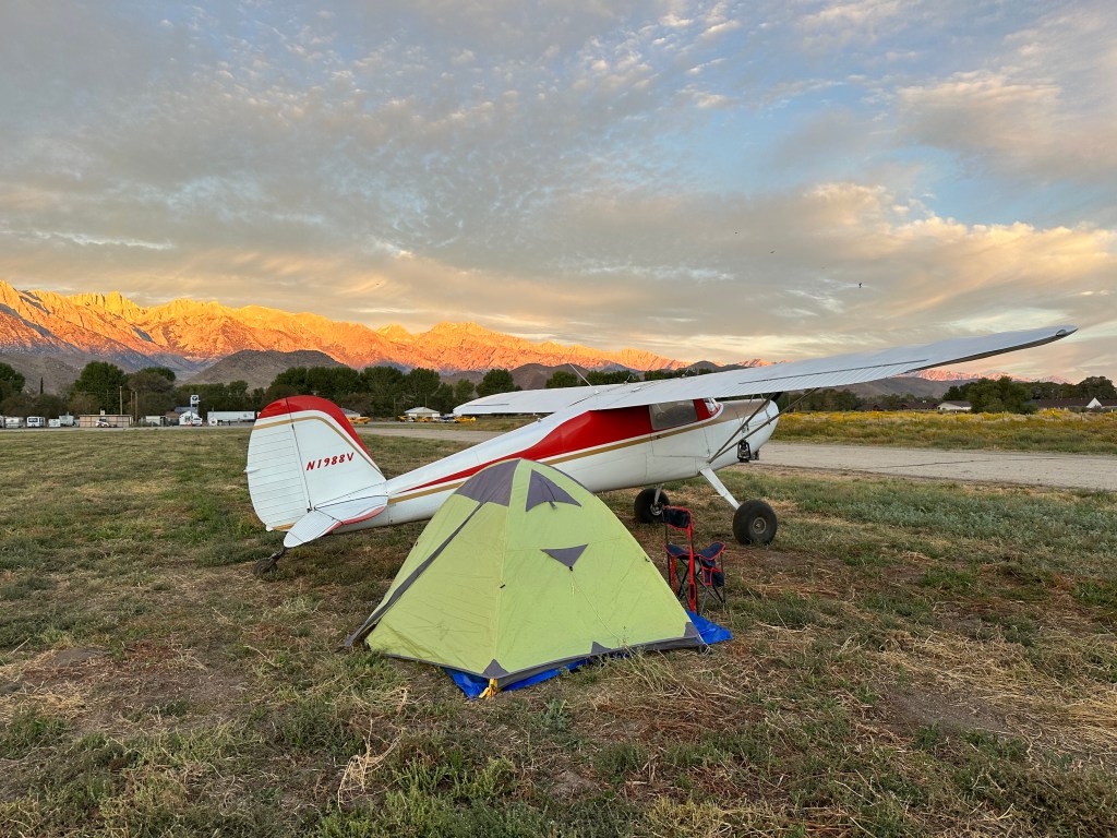 The default option is to tent camp with your plane – this is a backcountry fly-in after all! Tent camping at the airport is dry camping adjacent to your plane in the various dirt and grass parking areas. It is the desert – things are sharp – so be prepared! There are proper flush restrooms on-field, but no potable water. No recreational vehicles or camper trailers, please.