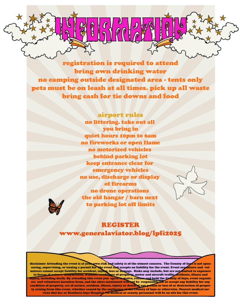 If you only want of attend and not be a part of the fly-outs, we ask that you consider visiting Lone Pine on a different occasion. This event is very popular and we want to reserve what space we can for pilots that intend to be as hands-on as possible with the fly-outs.